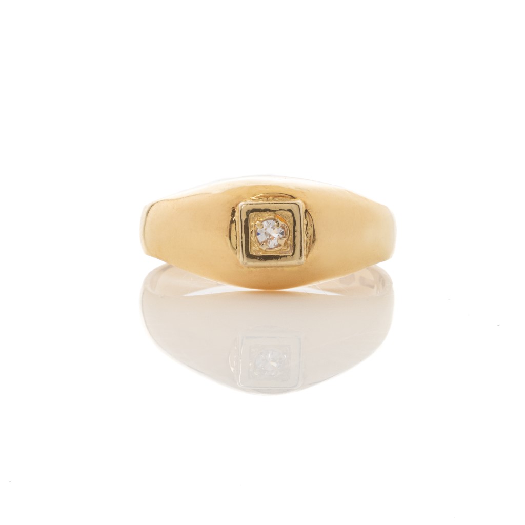 Beautiful ring in K18 yellow gold with shin finish and a bright colorless stone