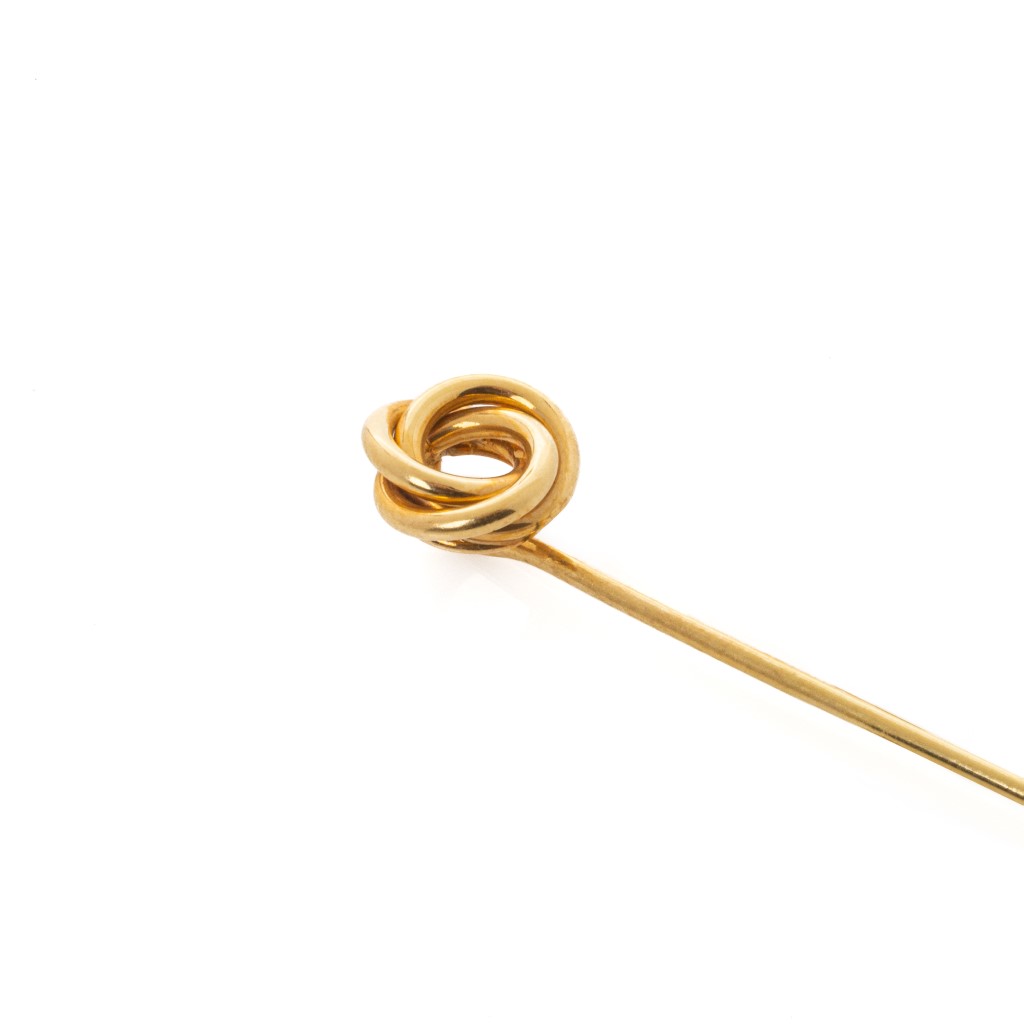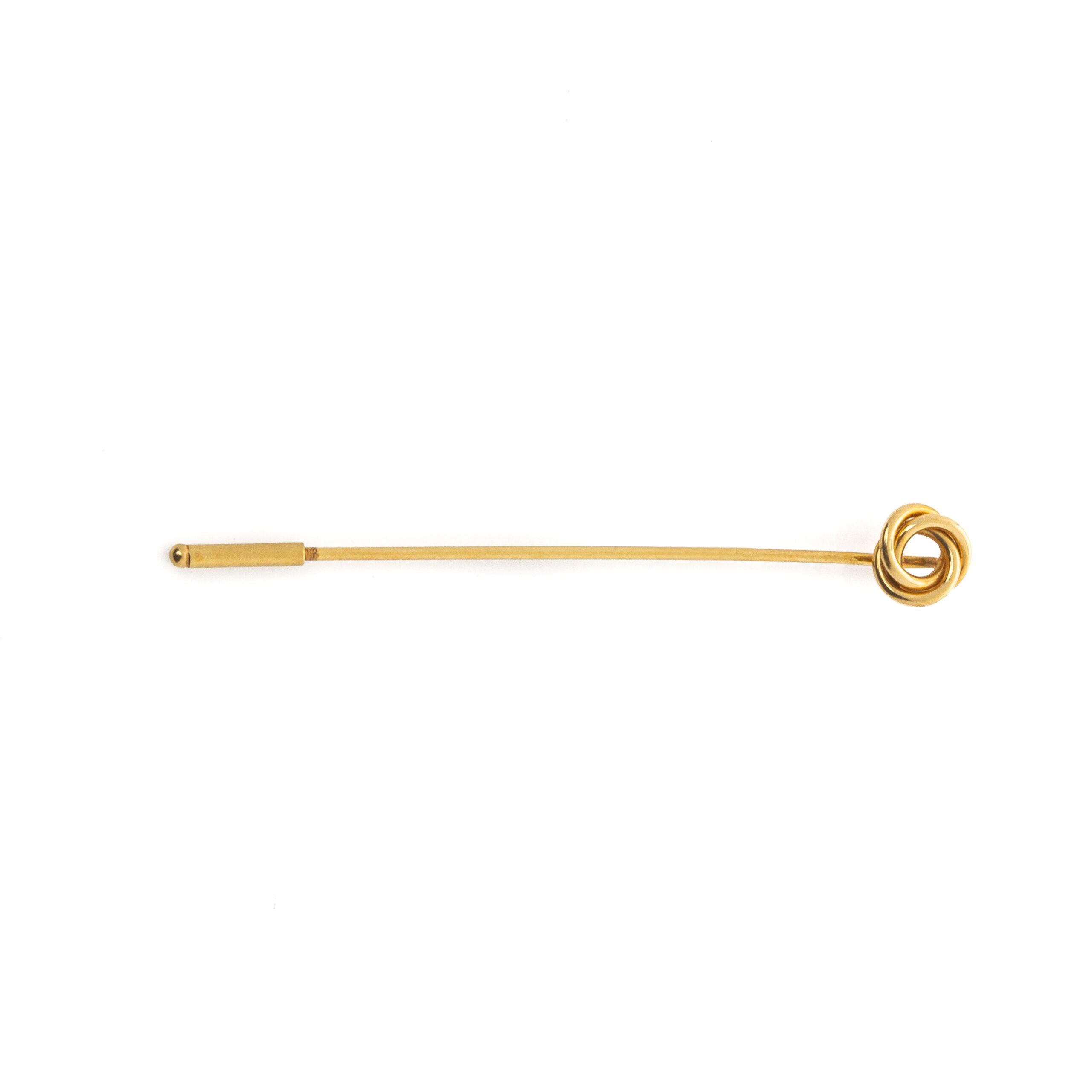 Elegant lapel pin in K18 yellow gold shaped like a knot, with shiny finish