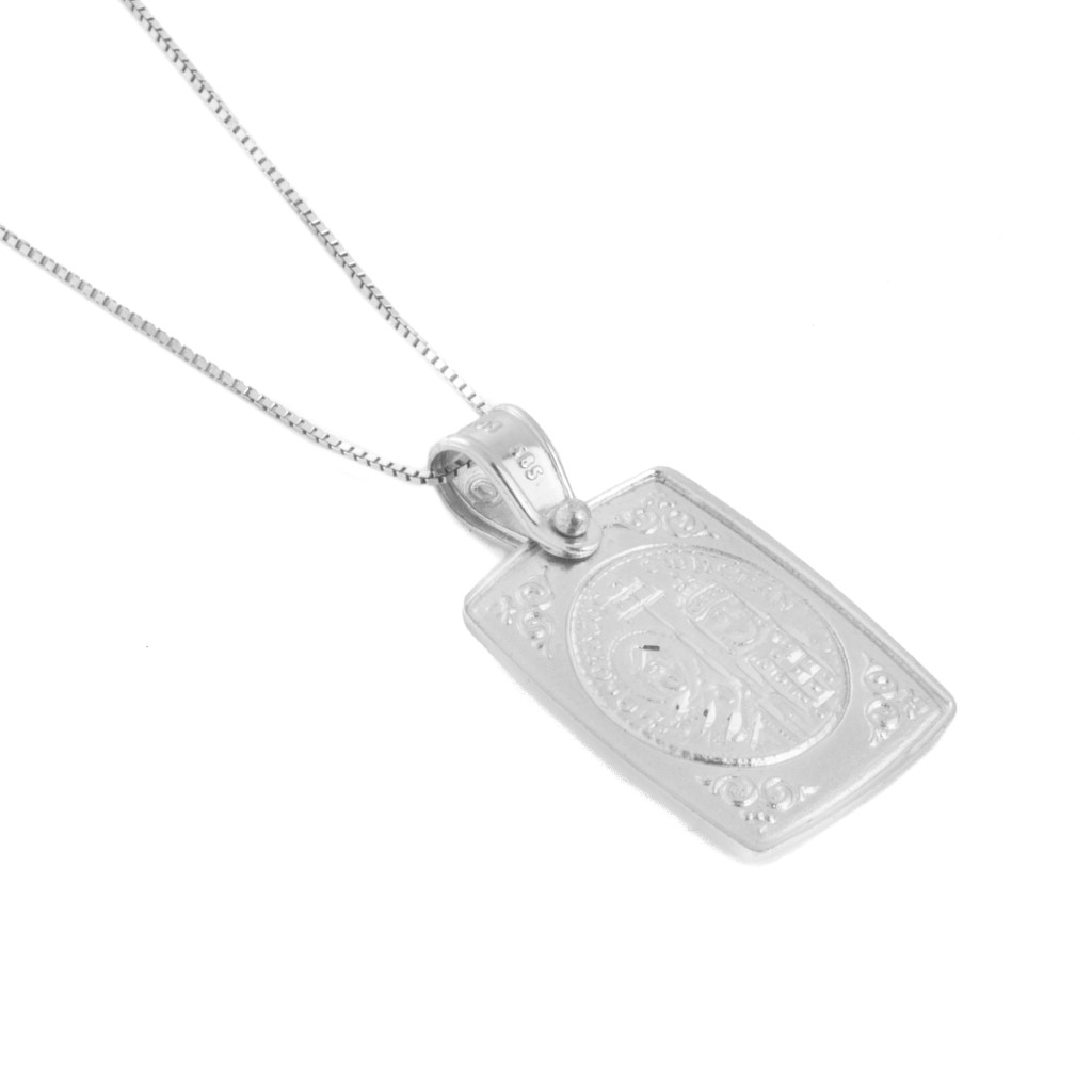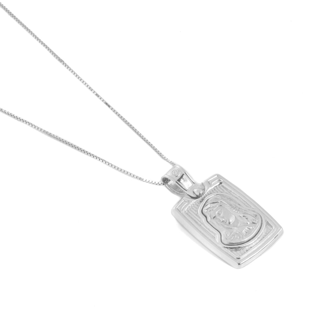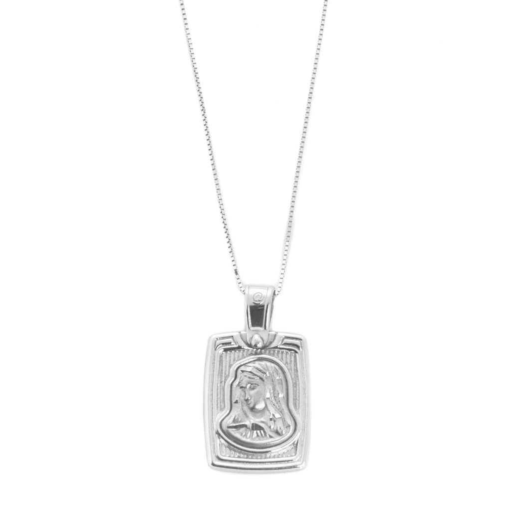 Όμορφο μενταγιόν διπλής όψης Παναγία / Κωνσταντινάτο από λευκό χρυσό Κ14 με γυαλιστερό και ματ φινίρισμα.