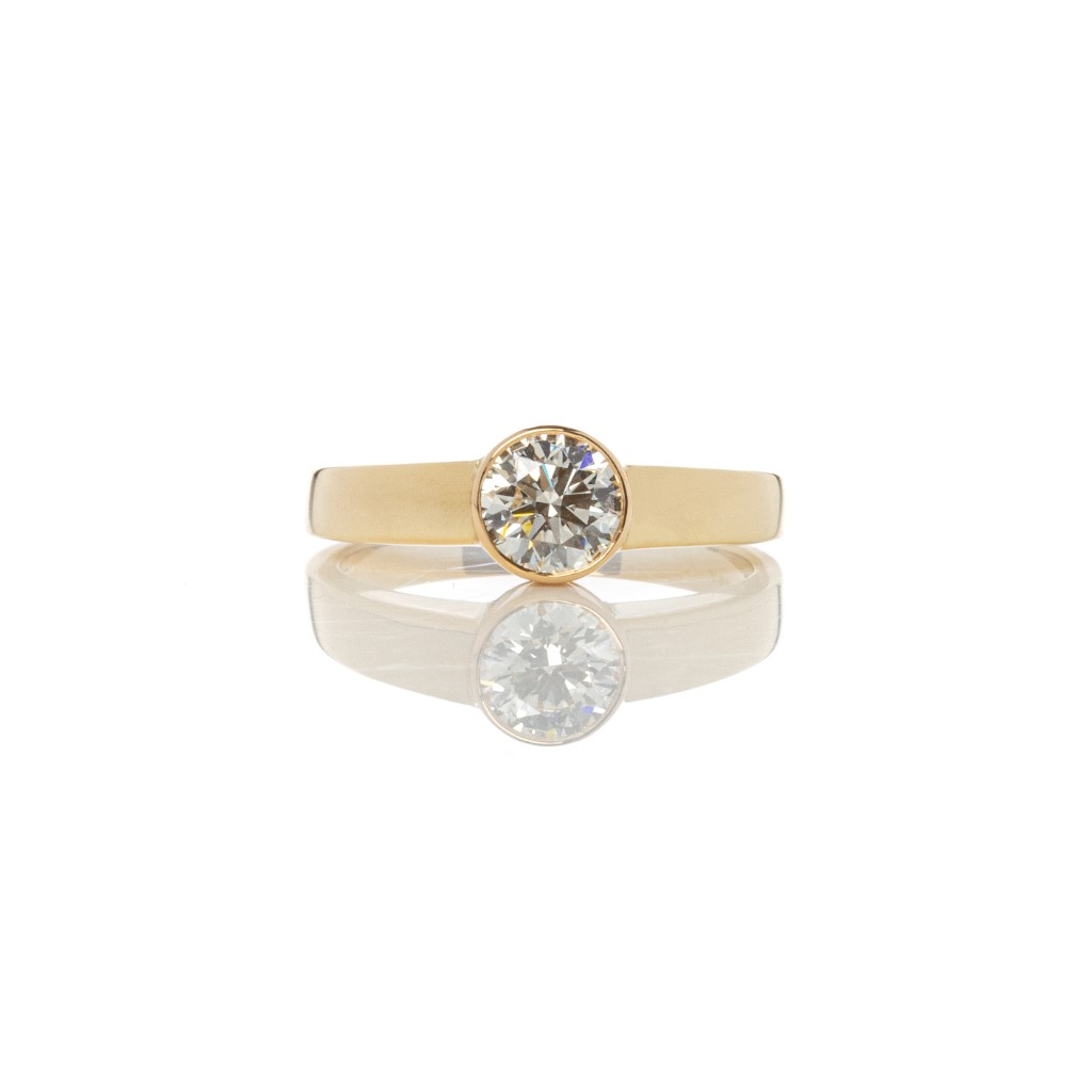 Εντυπωσιακό μονόπετρο δαχτυλίδι απο κίτρινο χρυσό Κ18 με γυαλιστερό φινίρισμα και ένα στρογγυλό διαμάντι μπριγιάν 0.66ct